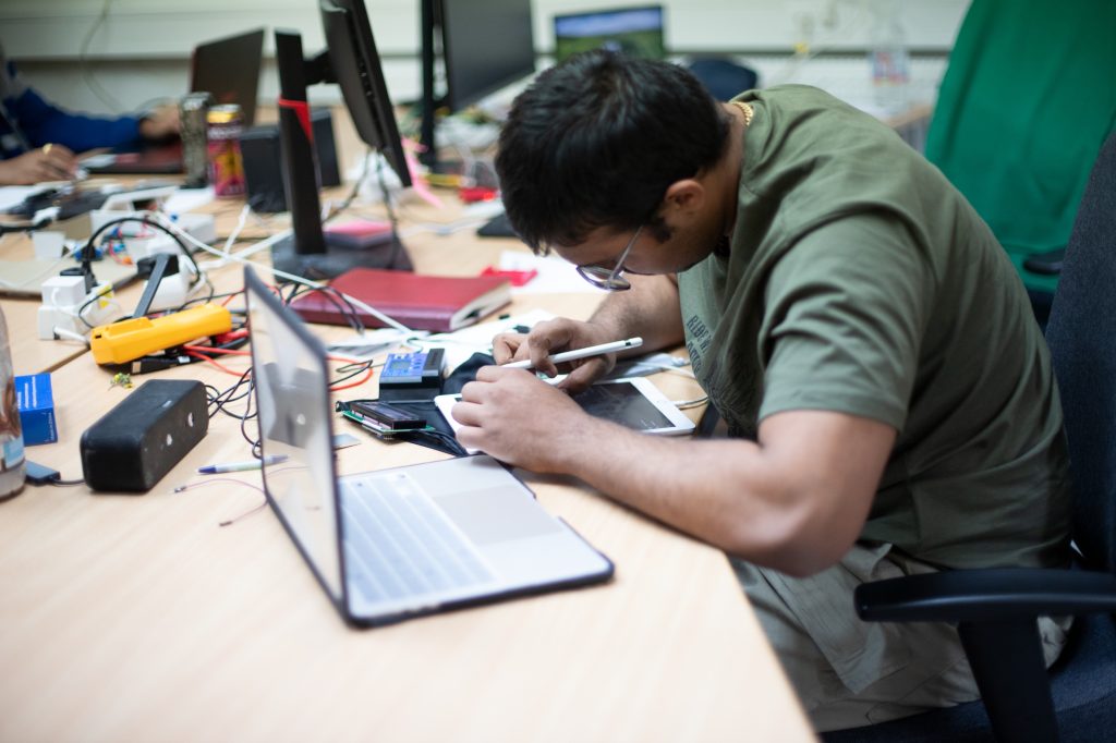 Gemeinsam übernahmen sie die Einführung in die Programmierung und standen den Studierenden, während des gesamten Science Camps bei der Umsetzung zur Seite. Durch diese Unterstützung konnten sich die Studierenden der Programmierung ihres Einplatinenrechners und der Kopplung mit verschiedenen Sensoren und Aktoren widmen.